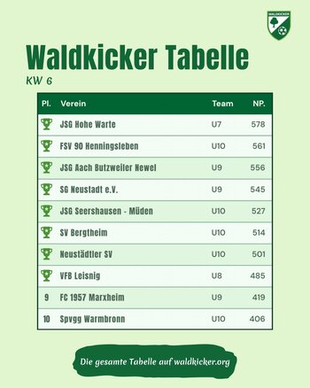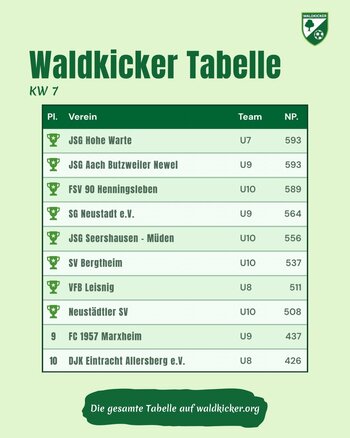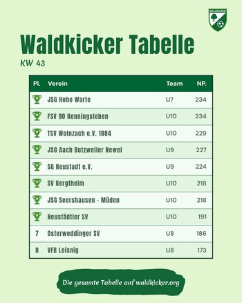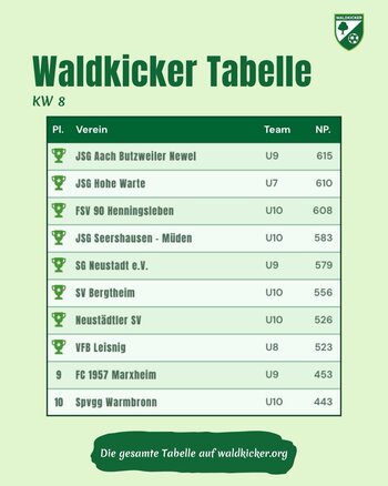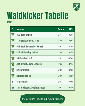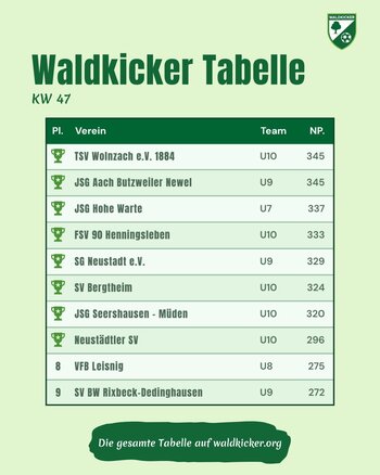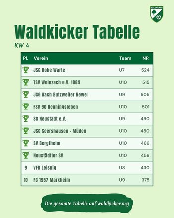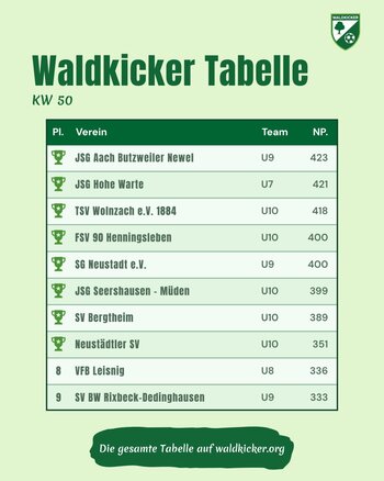 Für die offizielle und finale Bewerbungsphase für die Saison 2026/27 senden wir Euch rechtzeitigt alle Informationen. Wir freuen uns auf eine weitere nachhaltige Saison! Eure Waldkicker!