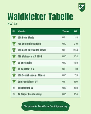 Für die offizielle und finale Bewerbungsphase für die Saison 2026/27 senden wir Euch rechtzeitigt alle Informationen. Wir freuen uns auf eine weitere nachhaltige Saison! Eure Waldkicker!