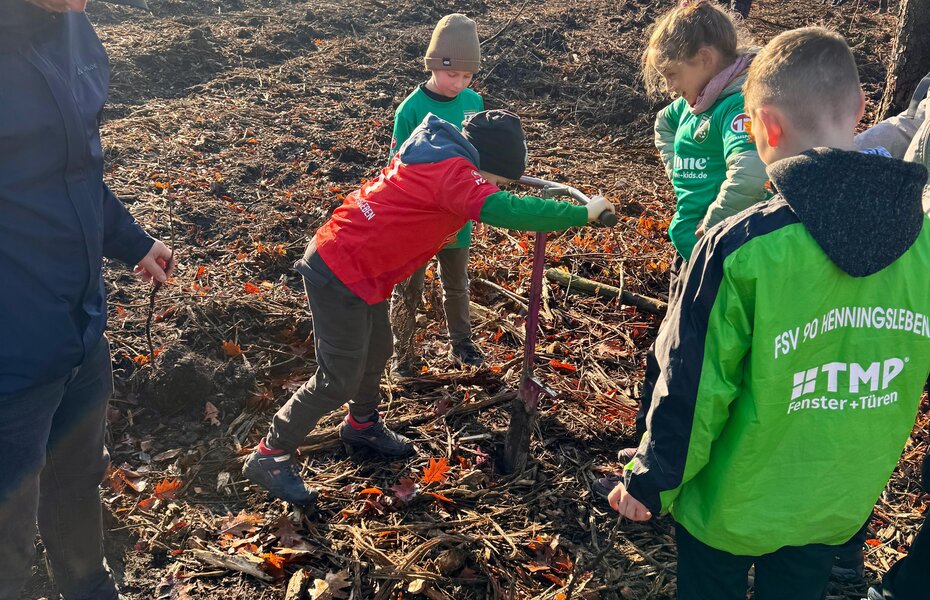 Baumpflanzaktion mit dem Kids Club von RB Leipzig