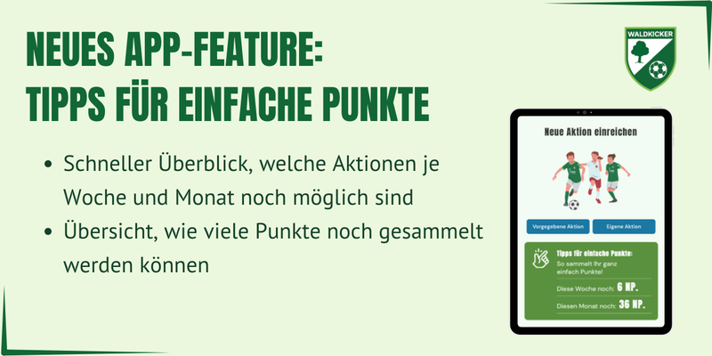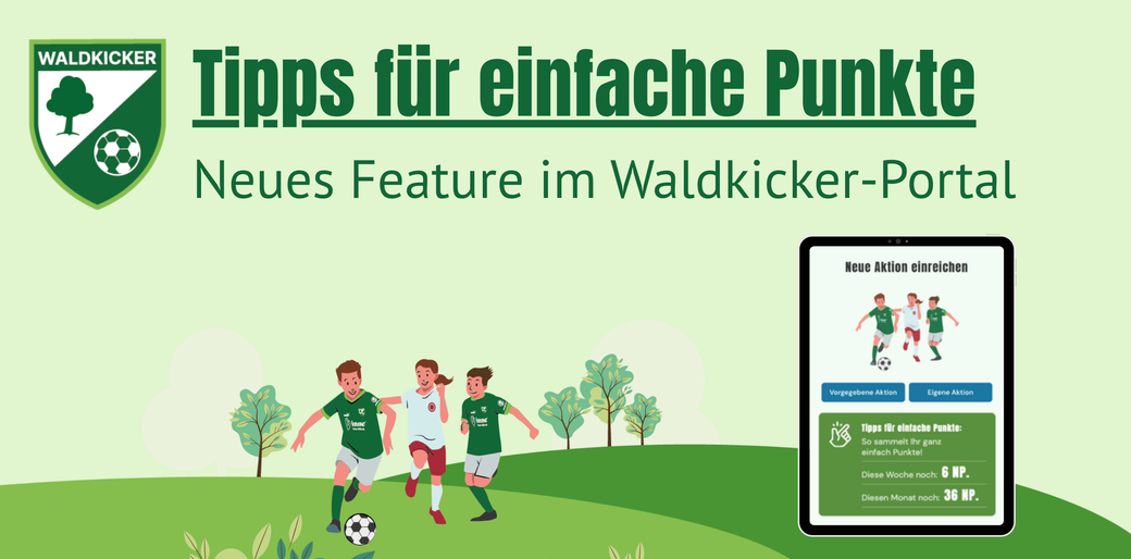 Um Euch bei der Durchführung von Aktionen noch besser unterstützen zu können, gibt es im Waldkicker-Portal ab sofort ein neues Feature: "Tipps für einfache Punkte".